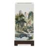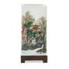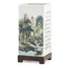 two sides painted with miniature figures of scholars in a lush mountainous landscape of waterfalls, cliffs, rockwork and pavilions, the remaining two sides inscribed with an essay, signed 'Song Ru', the base with a four-character iron-red mark reading 'Wang Ping Hua Yin', wooden stand