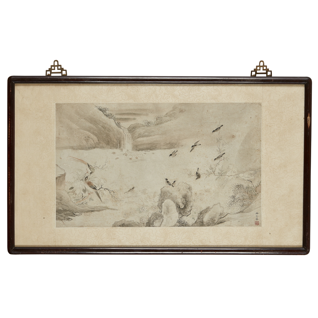 ink and colour on paper, signed 'Dan Shan', with one seal of the artist, framed and glazed