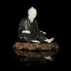 the man shown seated and watching a large tortoise crawling up his outstretched left leg, the head, hands and feet of ivory