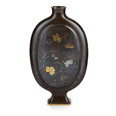 MIXED-METAL INLAID BRONZE FLASK-FORM VASE
