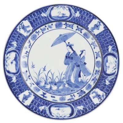 BLUE AND WHITE 'LA DAME AU PARASOL' DISH