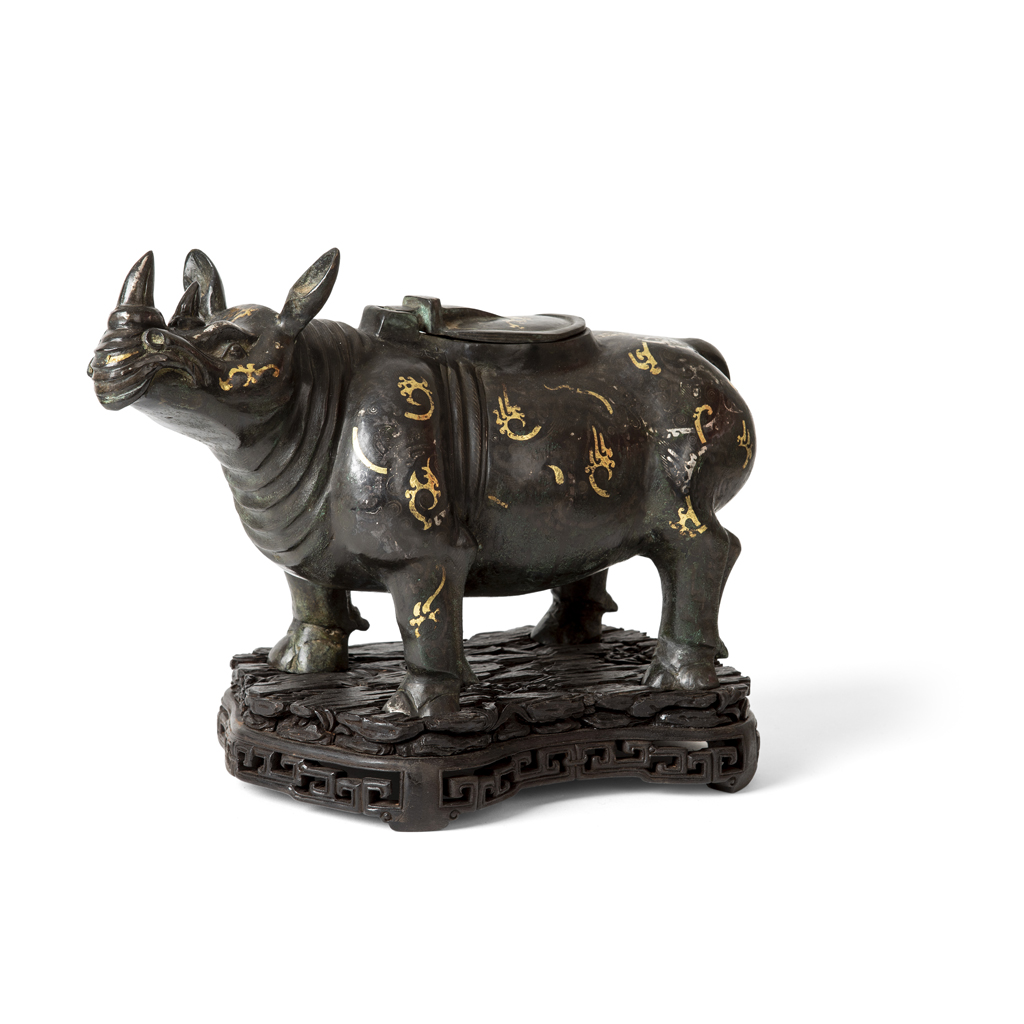 INLAID BRONZE CENSER IN THE FORM OF A RHINOCEROS