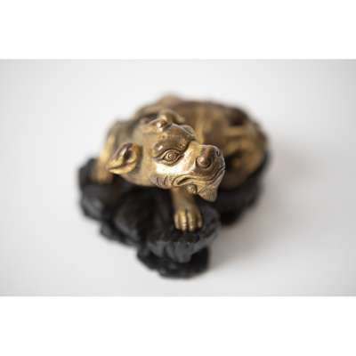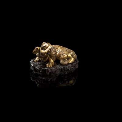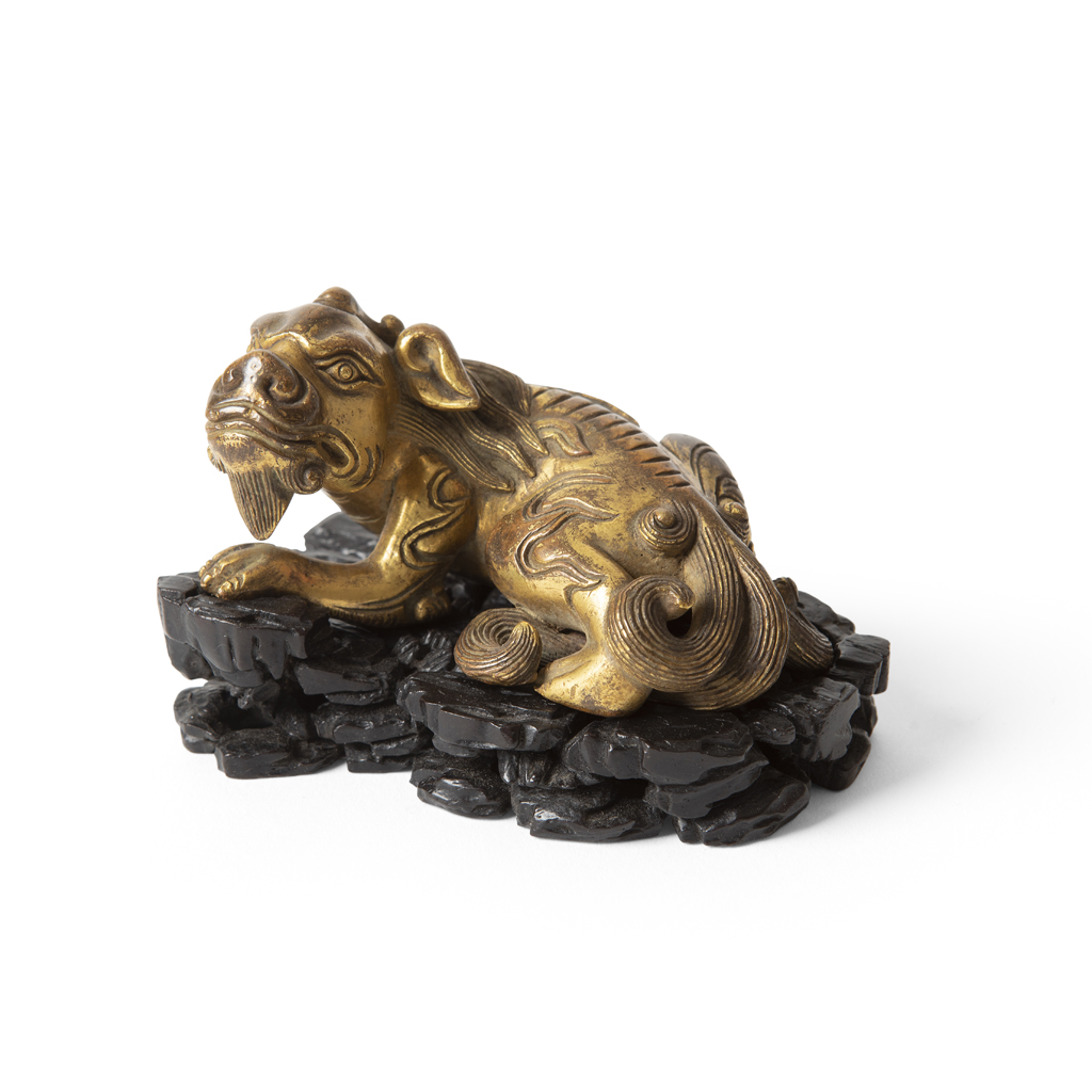 GILT-BRONZE 'MYTHICAL BEAST' SCROLL WEIGHT