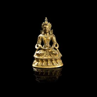 SINO-TIBETAN GILT-BRONZE FIGURE OF AMITAYUS