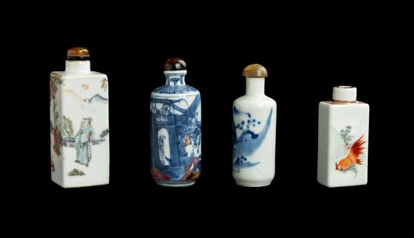 GROUP OF FOUR PORCELAIN SNUFF BOTTLES