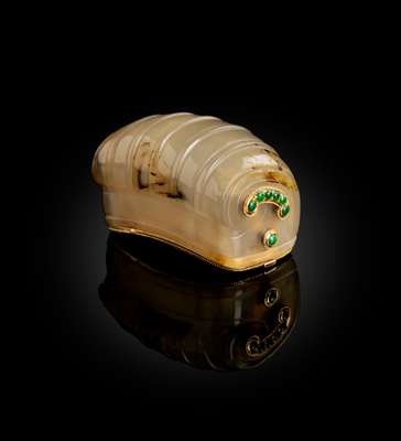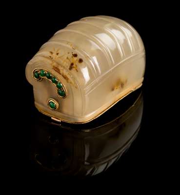 二十世紀 瑪瑙雕明式七樑束髮冠 後嵌金屬百寶為鼻烟盒