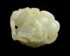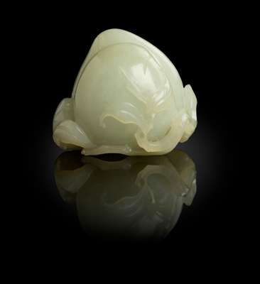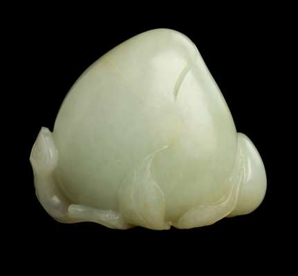 carved in round of a stalk of naturalistic peaches with leaves, the stone of even pale celadon hue