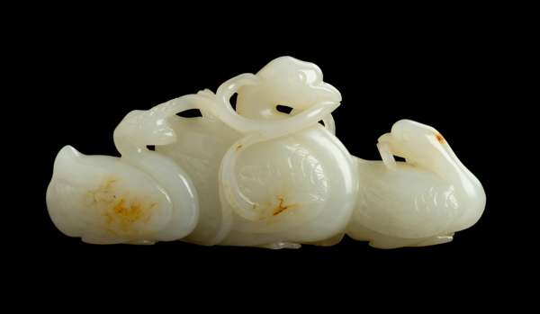 WHITE JADE WITH RUSSET SKIN CARVING OF GEESE GROUP