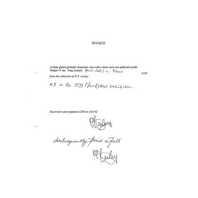 Exhibited: Early Oriental Ceramics, MacRobert Centre, University of Stirling, 5-25 July 1973, no. 8. Illustrated in the exhibition photograph (circled).