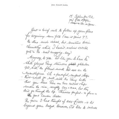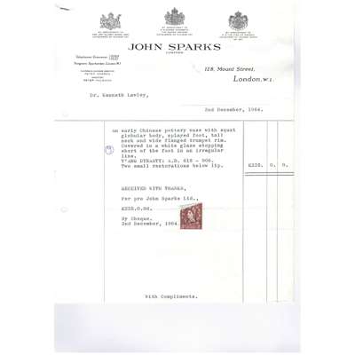 Acquired from Dr Kenneth Lawley, 28 Sep 2002, with an original invoice, who bought from John Sparks, 2 Dec 1964, with an original receipt and label on the base.