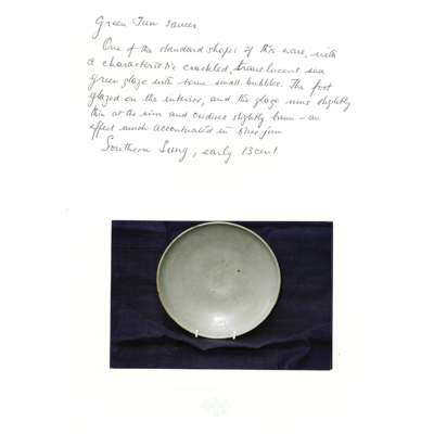 Compare to a green 'Jun' dish, Northern Song/Jin dynasty, slightly bigger and with different treatment to the mouth rim, but similar foot, previously in the collection of Dr Kenneth Lawley, sold at Sotheby's London, 1 Nov 2023, lot 48; Also see an example with upright rim and shallow curving well, Northern Song/Jin Dynasty, Sold at Bonhams San Francisco, 3 Mar 2008, lot 6605.