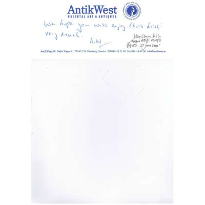 Acquired from Antik West Oriental Art & Antiques, Sweden, 27 June 2005, with an original receipt and labels on the body.