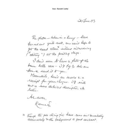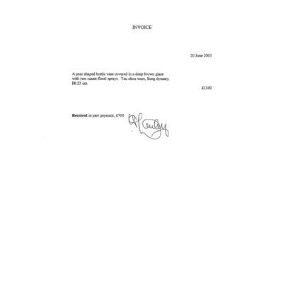 Acquired from Dr Kenneth Lawley, 20 June 2003, with an original invoice, receipt, and correspondence.