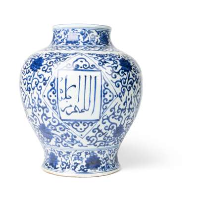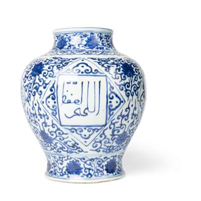 十九至二十世紀 青花開光阿拉伯文纏枝蓮紋罐