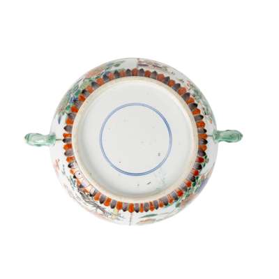 FAMILLE VERTE HANDLED BOWL WITH COVER