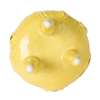 the globular body supported on three long feet and surmounted with two looped handles, the exterior carved in relief with irregular warts highlighted in brown enamel against yellow ground, the underside of the body incised with a four-character Qianlong mark