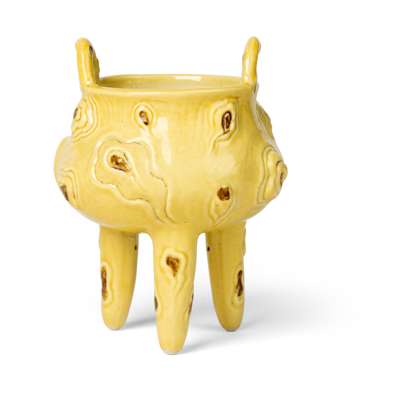 YELLOW-GLAZED WITH BROWN SPOTS DING-FORM CENSER