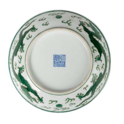 GREEN-ENAMELLED 'DRAGON' DISH