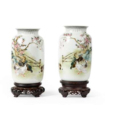 PAIR OF FAMILLE ROSE 'PIGEONS' VASES