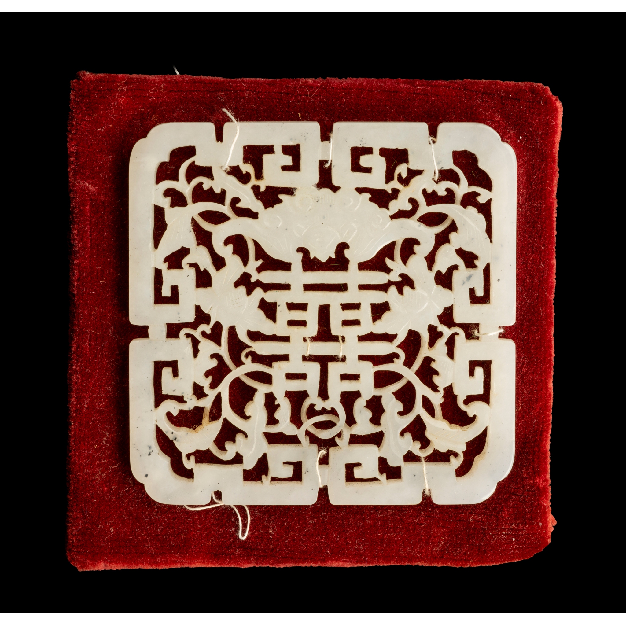 WHITE JADE 'DOUBLE-HAPPINESS' PLAQUE