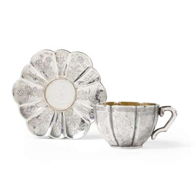 PARCEL-GILT EXPORT SILVER CUP WITH SAUCER