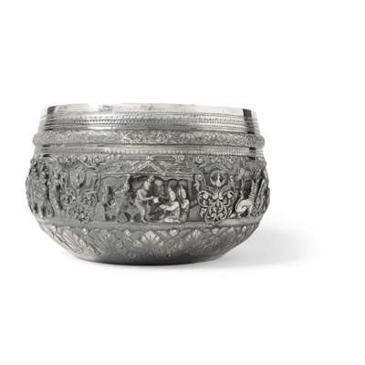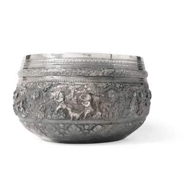 緬甸 十九至二十世紀 銀製人物紋大碗