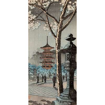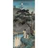 two otanzakuban tate-e prints, one depicting cherry blossoms at Ueno, Toshogu Shrine, signed with an archaic vessel-shaped red seal Hiroaki; the other moon at Sekiguchi, signed with a seal Shotei, mounted, unframed (2)