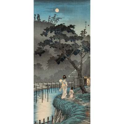 高橋松亭 《関口の月》 及 《上野東照宮》 鏡心 (兩幅)