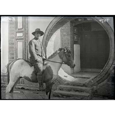 The old photograph shows Mr Forrest outside the China Inland Mission Moongate in Dali, taken around 1905.