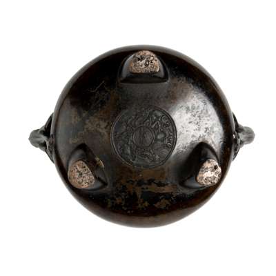 Qianqing Gong, The Palace of Heavenly Purity, or Qianqing Palace (乾清宫) is a palace in the Forbidden City in Beijing, China. It is the largest of the three halls of the Inner Court, located at the northern end of the Forbidden City. During the Qing dynasty, the palace often served as the Emperor's audience hall, where he held council with the Grand Council. Objects, especially censers, bearing Qianqing Gong mark are deemed similar to ‘Neitan Jiaoshe’ mark (內壇郊社, refers to the altar to Heaven and Earth within the inner walls of the Temple of Heaven) as Imperial wares adorning or used in their specific rooms. Compare to an example of a bronze tripod censer with chilong handles, Qing dynasty Qianlong period, with a different treatment of the ‘Qian Qing Gong’ mark, sold at China's Guardian, 19 May 2021, lot 4634.