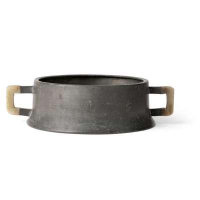 PEWTER-ENCASED JADE-HANDLED BOWL