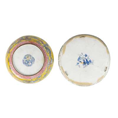 TWO PAINTED CANTON ENAMEL CIRCULAR PLATES