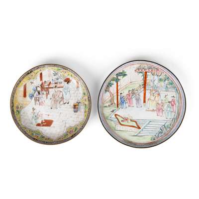 清 廣東銅胎畫琺瑯人物圓盤(共兩件)