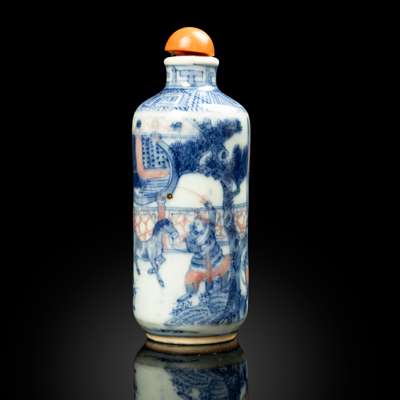 清 青花釉裏紅戲劇人物故事圖鼻煙壺