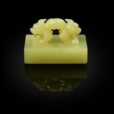 CHINESE YELLOW JADE CARVED 'DOUBLE-DRAGON' SEAL