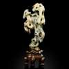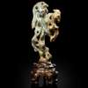 清 青花玉雕賞石擺件 帶木座