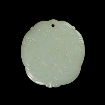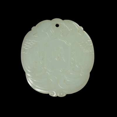 清 白玉雕綬帶鳥啣同心玉牌