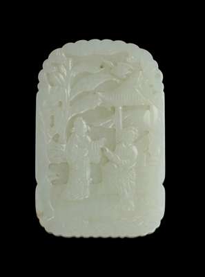 清 白玉雕詩文人物玉牌