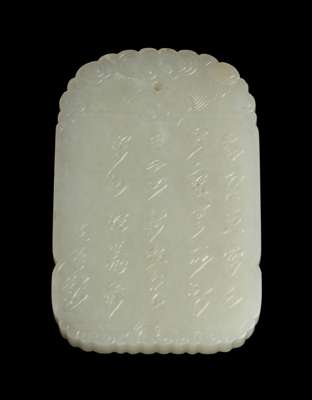 CHINESE CARVED AND INSCRIBED WHITE JADE PLAQUE