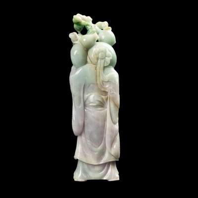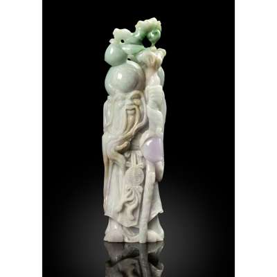 CHINESE GREEN AND LAVENDER JADEITE FIGURE OF SHOULAO