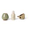 北宋/金 定窯系白瓷童子騎師塑像 及 長沙窯系鳥形哨、青釉雞心小罐(共三件)