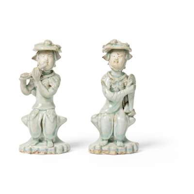 TWO CHINESE QINGBAI 'MUSICIAN' FIGURES