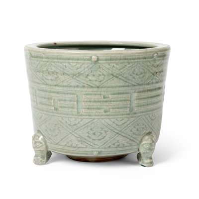 CHINESE LONGQUAN CELADON-GLAZED 'EIGHT TRIGRAMS' TRIPOD CENSER