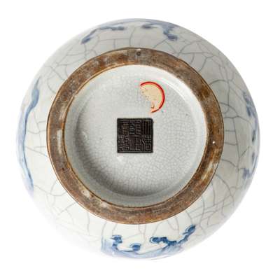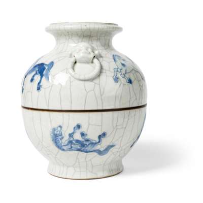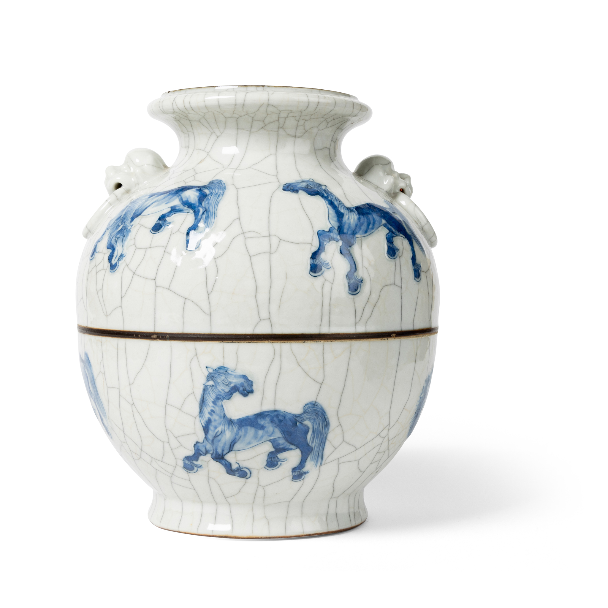 CHINESE GE-TYPE CRACKLE-GLAZED UNDERGLAZE-BLUE-DECORATED 'HORSE' VASE