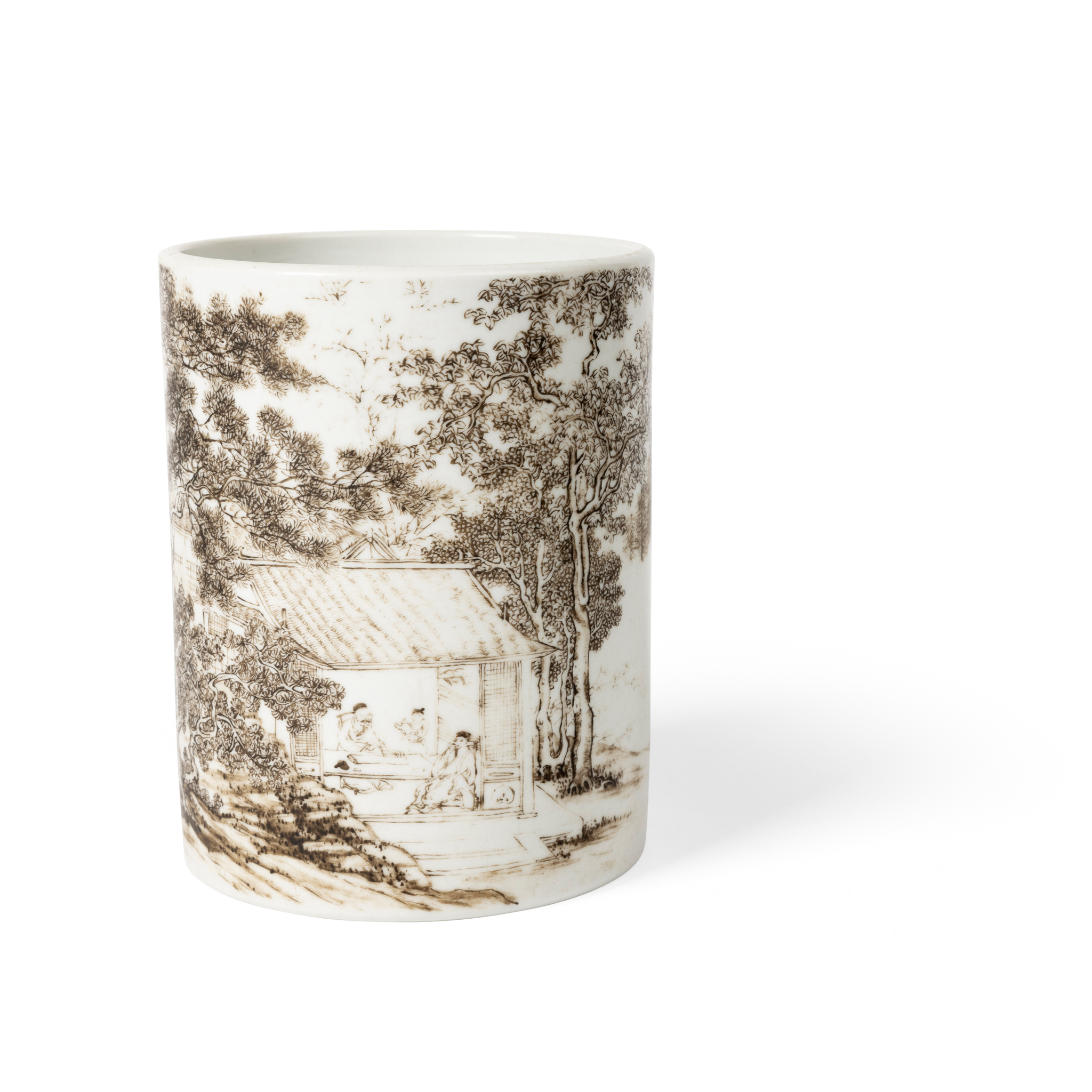 CHINESE GRISAILLE-DECORATED 'LITERATI' BRUSH POT