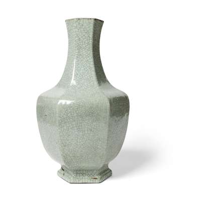 A closely comparable hexagonal vase of similar glaze, marked and dated to the Qianlong period, was sold at Christie's Hong Kong, 3 Jun 2015, lot 3244.