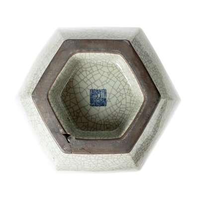 LARGE CHINESE GE-TYPE CRACKLE-GLAZED HEXAGONAL VASE