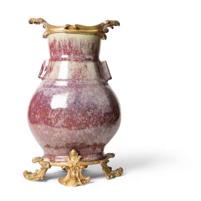 CHINESE ORMOLU-MOUNTED FLAMBÉ-GLAZED ARROW 'HU' VASE