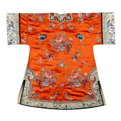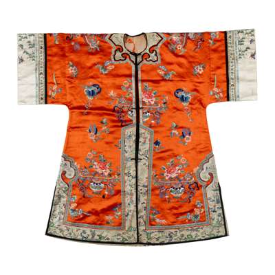 CHINESE ORANGE-GROUND SILK EMBROIDERED LADY'S ROBE