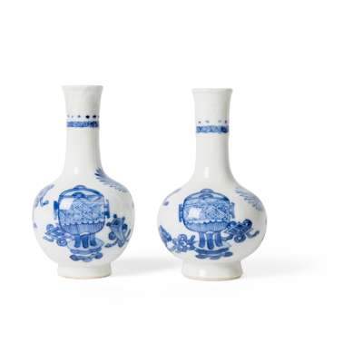 PAIR OF SMALL CHINESE BLUE AND WHITE 'ANTIQUITIES' VASES